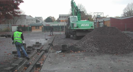 Der Pausenhof dieser Schule sollte umgestaltet und funktional optmiert werden. Aufgabe der Planung war die Aufwertung "im Bestand", da ein kompletter Neubau nicht finanzierbar war.