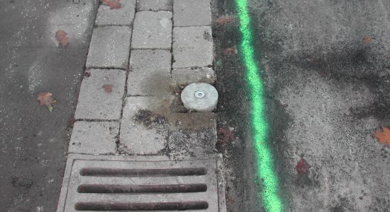 Zuletzt wurde die Linierung angebracht. Für Basketball wollte die Schule noch die "alte", eigentlich nur bis 2009 gültige Markierung haben, da in der Sporthalle auch keine Markierung nach den neuen Regeln existiert. Zur besseren "Lesbarkeit" wurden die Linierungen in drei Farben ausgeführt: